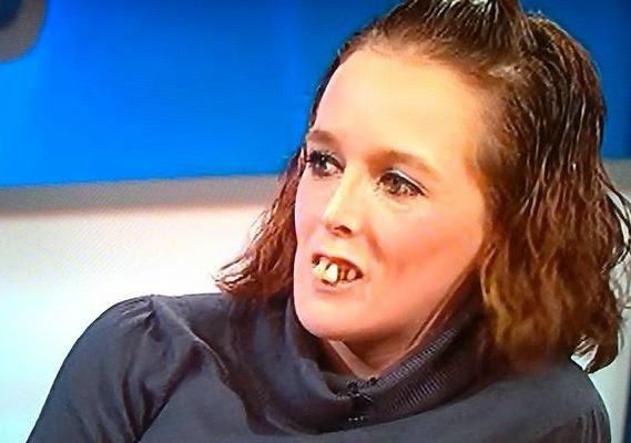Popular UK talk show, The Jeremy Kyle Show today featured this lady above who was begging “Stop harassing me just because I’m sleeping with your ex' but instead of fans of the show to concentrate on what the lady came to the show to talk about, British Twitter went crazy over her teeth. Can't blame them..lol. See some of the hilarious, classic responses on twitter after the cut..